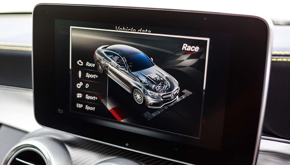 With launch control engaged – quickly accessed via the brake pedal and paddle shifters – the coupe will hit 100km/h in a scant 3.9 seconds on to an electronically-governed 250km/h top speed. The optional AMG Driver’s package will cut the limiter for slightly under the triple-century at about 290km/h.