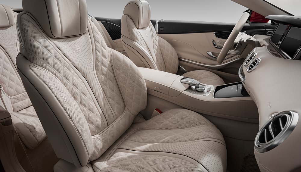 The bulk of the attention to enhance the Cabriolet is focused in its sumptuous cabin, the ambience of which is inspired in part by the Mercedes-Benz Style Arrow 460-Granturismo yacht. Fully leather-lined with a waterfall-inspired upholstery pattern featuring diamond-quilted side bolsters and Budapest piping, various other pairings with interior trim are also available. The latter includes designo nut brown magnolia wood accents, an exclusive for the S 650.