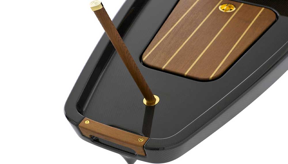 The Kayak 1, from New Zealand designers Jamie McLellan and Andy Jacobs, is a one-person beauty made from carbon fibre, teak, and ash. It’s nearly 3.6 metres in length and just 0.8m wide, weighing only 18.1kg, making it easy to move across the water and to transport across land. Each ‘King of Kayaks’ is built to order in New Zealand and requires 6 to 8 weeks for delivery. Optional accessories include a matching paddle, seat pads, a protective cover, and storage cradles.