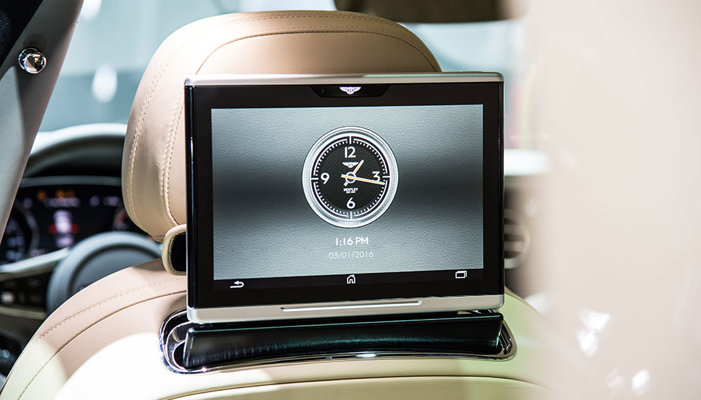 Conceived and built in Crewe, each Bentayga which rolled off the state-of-the-art production facility features an industry-record aluminium body-side; the largest single-piece aluminium pressed for any car in the world. A sculpted front end is formed by air at 500-degrees Celsius and double-glazing is applied for front and side glass for better acoustics on a standard sound system of ten speakers and six channels (upgradeable to the Naim for Bentley Premium sound system comprising 18 speakers, 19 channels and a 1,950-watt amplifier with Super Tweeters).