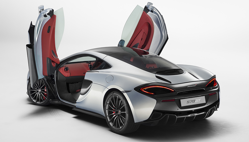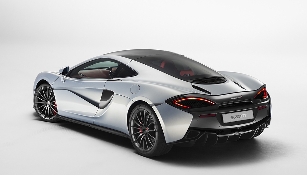 Although it has the same carbon fibre chassis/aluminium body panel construction as the 570S, the rear three-quarter area has been completely redone, with the flying buttresses replaced by a fastback-style roofline that incorporates a side-opening hatch on the rear windscreen. This provides access to a 220-litre storage space (the so-called Touring Deck), in addition to the space under the bonnet for more luggage room. The roofline is elevated and elongated for more headroom in the 570GT.