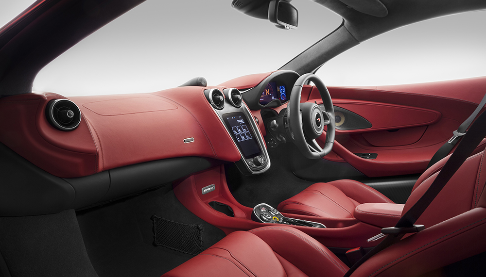 With the 570GT, McLaren is clearly saying it’s not the destination or the moment so much as the journey that counts. Meant for everyday use and long-distance trips, the hard sports seats and stripped-out interiors have been replaced by leather-upholstered interiors as standard – Harissa Red in the case of my test car. The 570GT I drove also came with a 12-speaker Bowers & Wilkins sound system.