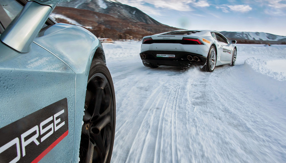 Finally, with just enough knowledge to stay out of trouble, the participants are let out on the full-length snow circuit to see the Huracán live up to its name. The narrow circuit, carved out by a snow plough, is bumpy and tricky. As the sun waxes and wanes, patches of ice morph and change grip levels again. Slipping and sliding the Huracán through the tight circuit is intensely thrilling and a fantastic lesson in car control. In such conditions, electronic systems provide limited assistance, explains the instructor, and the majority of control is still up to the driver. Even if you leave not learning anything from all that, you can still enjoy the experience of turning a million-dollar Italian sports car into the world’s most over-qualified snowblower for a few short moments. It’s hilarious, exciting and totally unnecessary – in other words, everything a sports car is supposed to be.