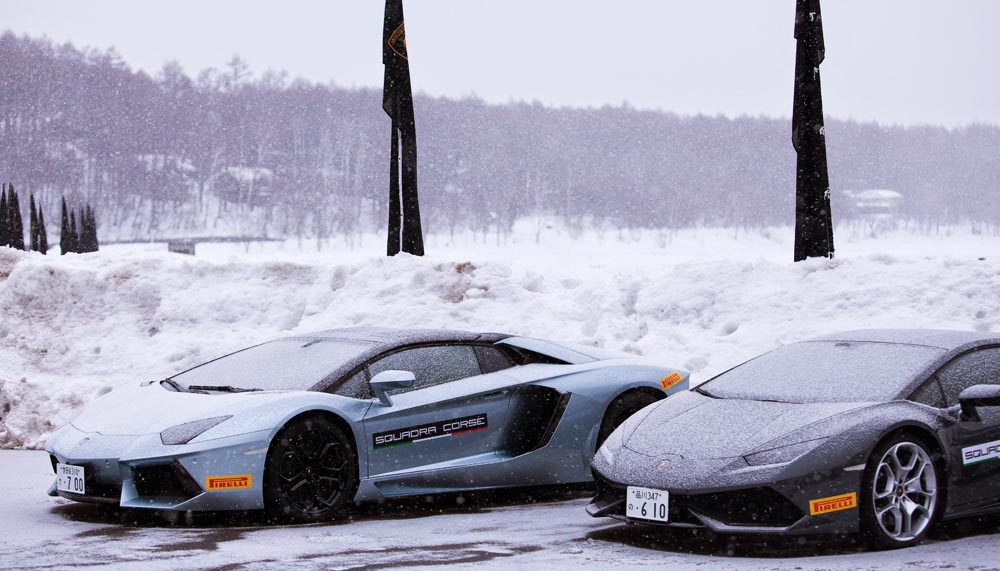 Winter Accademia events are held annually in Europe and Japan, but this year was the first time the latter was open to customers from the region. The locale was Lake Megamiko, near Mount Tateshina in Nagano prefecture, 150km from Tokyo. The frozen lake, covered in snow, provided the perfect place to carve out a temporary circuit. Driving a 610bhp sports car on snow is no joke, but Lamborghinis have all-wheel drive, which helps maximise traction. The day began with learning how to induce oversteer on purpose.