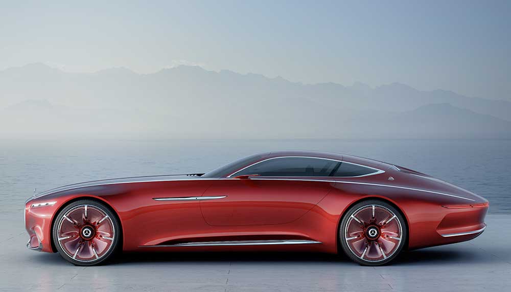 Now an exclusive specification level instead of a sub-brand, the Maybach designation was recently presented on a coupe concept. Launched during Monterey Car Week, which wrapped up at the Pebble Beach Concourse d’Elegance, the Vision Mercedes-Maybach 6 is an aero-style 2+2 seater coupe, a contemporary interpretation of classical design principles which have existed from the pre-war era. Of note are the split rear windscreen, overlong bonnet and transparent body-colour covers on the rims.