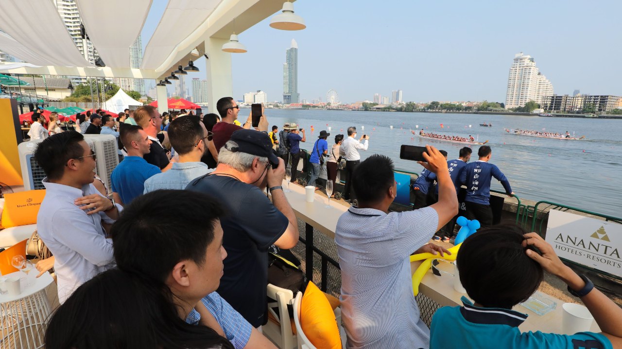 By the riverbank near Anantara Riverside Bangkok Resort, guests from near and fear savoured ice cold drinks from champagne, whisky and beer tents.