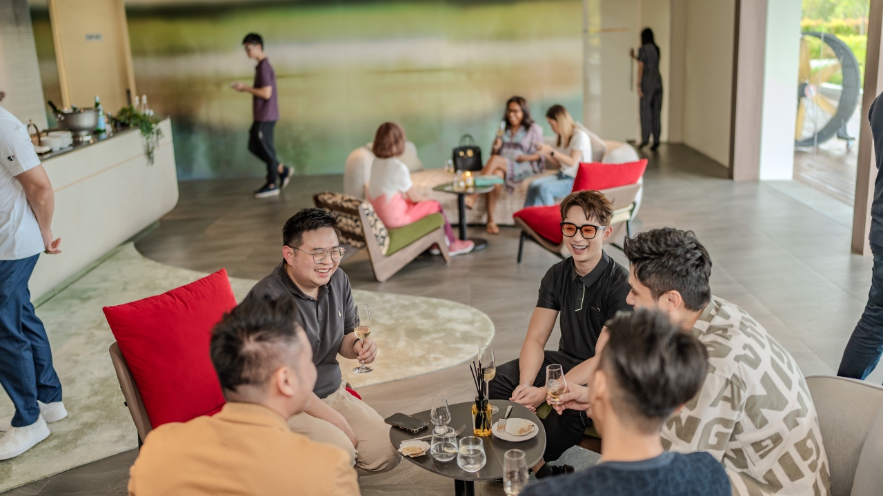 Robb Report Malaysia’s Johor-based guests would soon begin streaming into The Veil, a new restaurant located by the water’s edge at Emerald Bay, and were welcomed into the restaurant’s private lounge with Evian’s classic mineral and new sparkling water, with its subtle bubbles and clean mineral aftertaste providing refreshment with every sip.