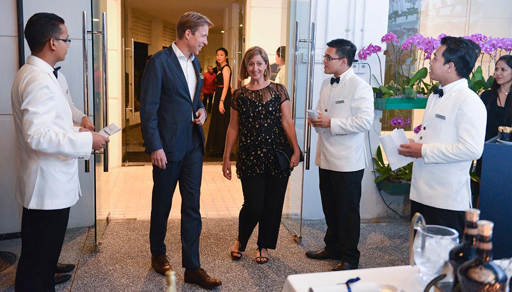 Guests turned up at the Smokehouse of the Majestic Hotel Kuala Lumpur for pre-dinner drinks before sitting down for dinner at the adjacent Orchid Conservatory. Here, they were regaled with stories of polo, fine aged Scotch and a menu comprised snow crab of appetisers, and mains of roasted lamb rack, beef rossini and lobster tail.