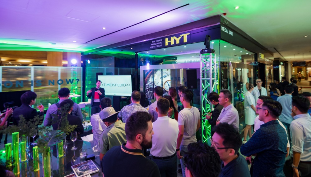 The romance and excitement of cutting-edge horology was well and alive at the recent HYT Watches event held at the brand’s flagship boutique at Starhill Gallery. A host of timepiece connoisseurs turned up at a venue transformed to resemble a space-age laboratory, with canapes and drinks delivered in test tubes. A welcoming address by HYT Watches’ CEO Gregory Dourde showcased some of the advanced hydro-mechanical breakthroughs which the watchmaker has imbued into its updated collections.