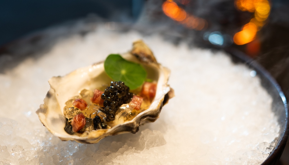 Velvety smooth Fine de Claire Oyster paired with Malaysian-produced Amur caviar
