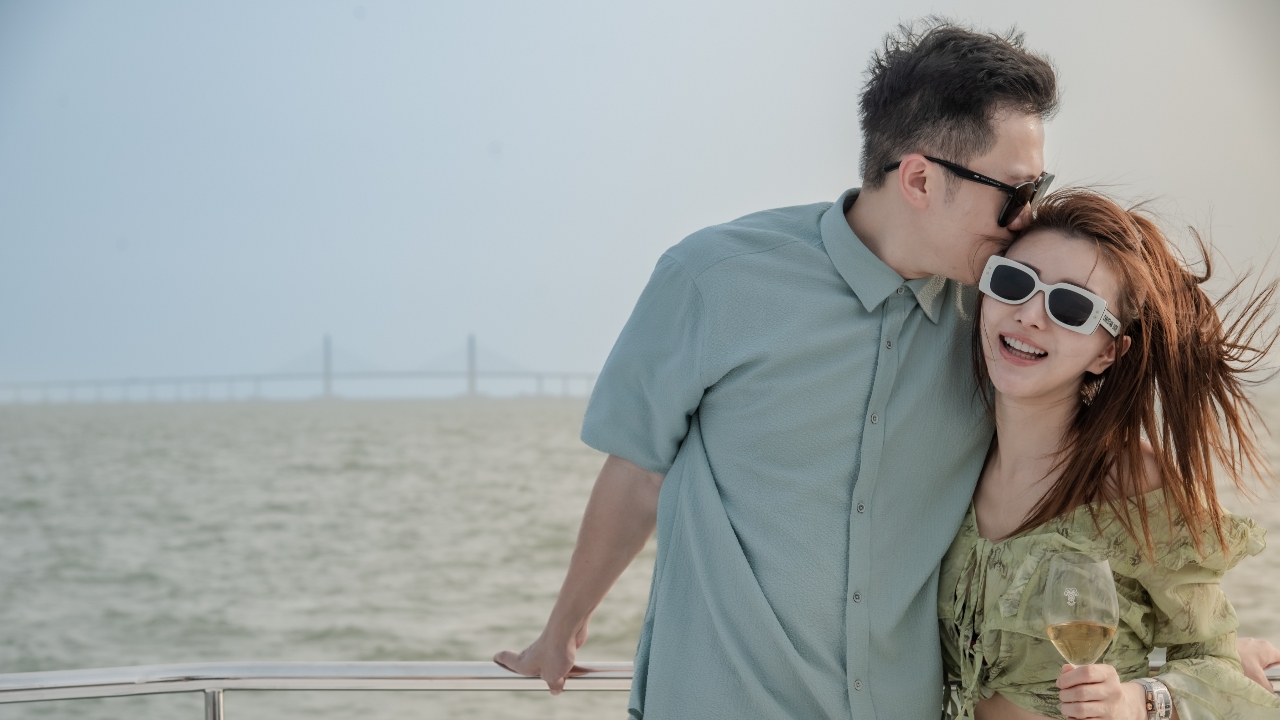 The next day, not far from Haku, guests of Robb Report Malaysia’s Island Escape gathered at Straits Quay Marina to board the Lady Catryna Leopard catamaran for an evening cruise with Champagne Telmont. Guests were garbed in various hues of green to reflect the dress code of ‘193,000 shades of green’—a reflection of Champagne Telmont and its owner Remy Cointreau’s promotion of sustainable packaging using ‘transition glass’ for its bottles, where colours ranged from green to cinnamon.