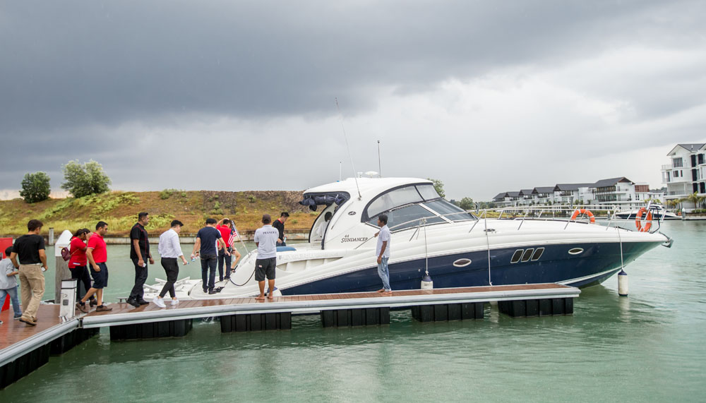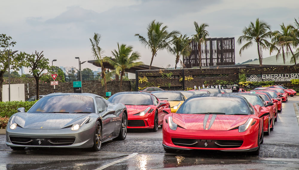 The roar of 18 Ferraris enlivened a typically idyllic Saturday afternoon at Emerald Bay, a marina-themed luxury residential development in Puteri Harbour, Johor. Members of the Ferrari Owners’ Club Malaysia were greeted by a magnificent vista of waterways and villas, as well as a 45-foot motor cruiser.