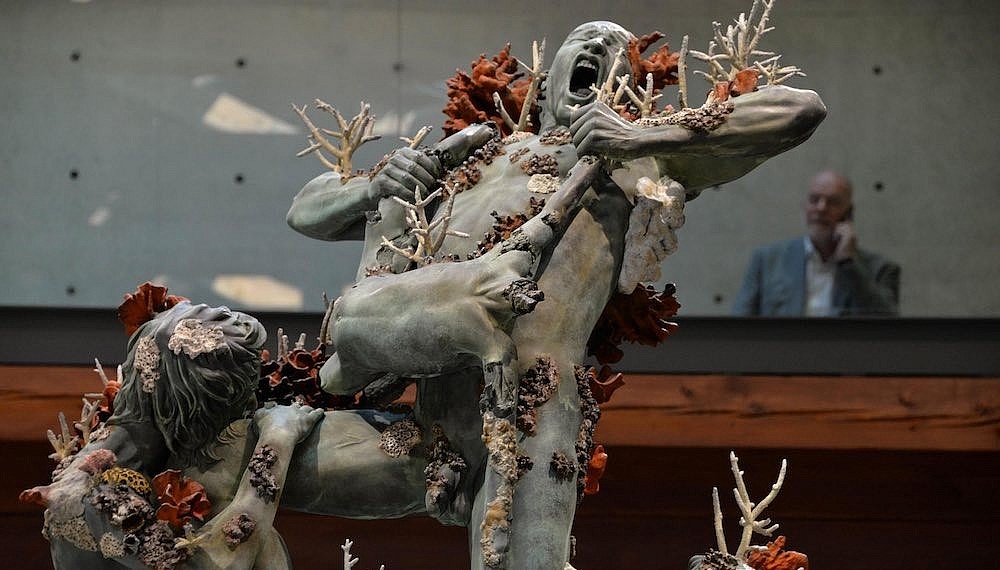 Smaller exhibits show equal amounts of creativity. Old World cultures are referenced, sometimes in odd ways such as the twin statues of Hindu goddess Kali facing off against the Hydra of Greek mythology. Damien Hirst himself appears in it, as a statue of one of the collectors, covered – as is the rest of the collection – in coral, anemones and sea slugs. So if you love the exhibition, or if you loathe it, you can go right up to this bronze-cast Hirst and express those sentiments. Just don’t expect him to respond.