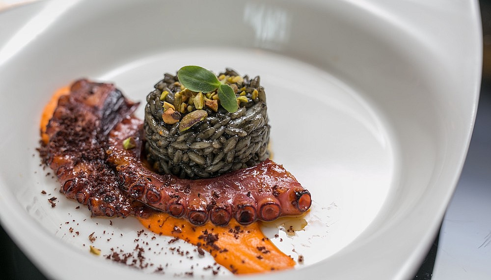 His lightness of touch was plain to see in the crisp arancini balls that were circulated around The Library beforehand, and an amuse-bouche of an oyster with wasabi chips and Avruga caviar. Meanwhile, an ink-black dish of risone pasta with charred, citrus-glazed octopus presented a welcome alternative to the stodginess of risotto, lifted by a surprisingly spicy tomato aioli – an allusion to Sicily’s fiery spirit.