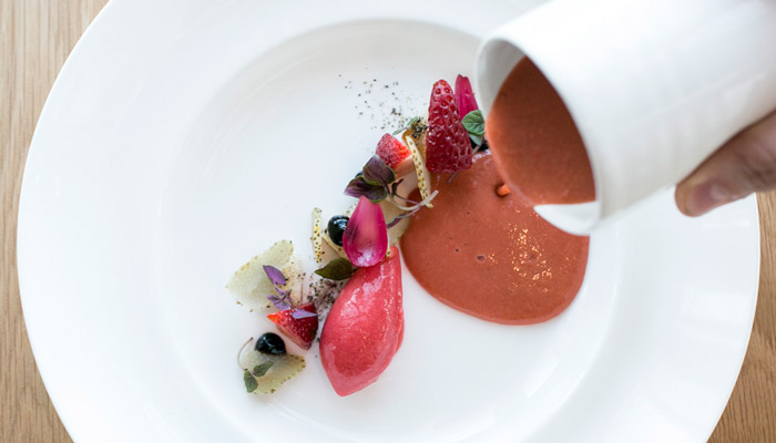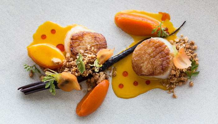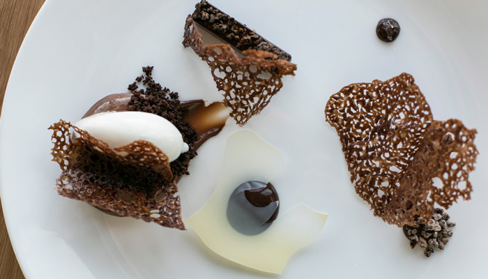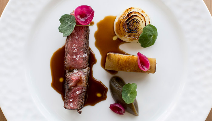 To begin, an enticing amuse-bouche — say, a crispy gougere of Gruyere by pastry chef Gregory Baumgartner — awakens your appetite. The entrees are equally tempting thanks to chef and partner Vartan Abgaryan’s tasty surprises: a deconstructed suckling pig offers loin and belly cuts with the addition of a crispy dark-meat fritter that becomes the star of the plate. His tender young chicken breast, whose golden-crisp skin hides a bed of foie gras and black-truffle shavings, convinces one that all chicken should be served this way.