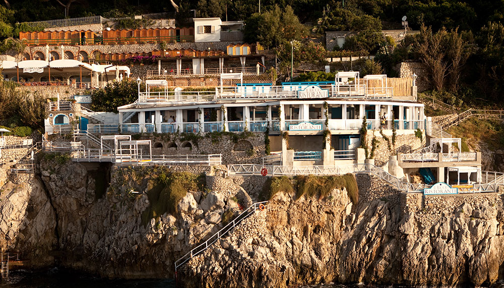 For this reason, among others, Il Riccio – the seaside restaurant of Capri Palace Hotel and Spa in Anacapri is one of the island’s bestloved establishments. The elegant decor, which pairs blue-painted wooden tables with canvas sun curtains and a ceiling of woven reeds, not only enhances the aquatic surroundings but also sharpens diners’ anticipation of enjoying the fruits of the sea. Offering an assortment of dishes that blend tradition with modern restraint, Il Riccio (‘the sea urchin’) specialises in traditional and contemporary plates. Among the classics, one might choose marinated anchovies with couscous and tomatoes, while the modern menu items include tuna tartare with tomato-and-celery salad.