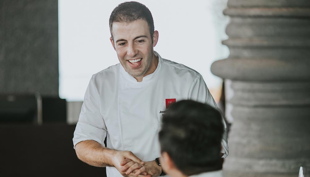 With the newly conceptualised menu, Sergentakis proves that he is capable of many things. He’s good at being tender, as shown by his Warm Salad of Tochigi Wagyu Beef, where beautifully marbled Tochigi wagyu is thinly sliced and seared for a caramelised layer on the outside, then made melt-in-the-mouth soft in a low temperature sous vide. He’s exceptional at giving little surprises, as apparent in the tangy bursts of flavour in the Tuna Tartare Jicama Rolls, which has minced blue fin tuna, mango coulis and yuzu dressing wrapped in sliced Jicama and topped with crispy taro. He’s also the maestro of striking a good balance, as evident in the Rice Flake Crusted Lobster, a delicious amalgamation of soft and crispy textures featuring perfectly cooked lobster encased within fried rice flakes. It’s in this dish that Sergentakis’ inventiveness truly shines. Accompanying the lobster is a fricassee made from bell peppers, Chinese sausages and pineapples – a definite departure from the traditional creamy French sauce, and with a Southeast Asian twist to boot.