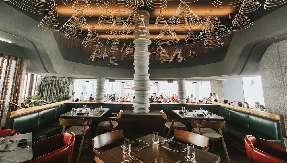 It’s been said that we also eat with our eyes; the presentation of a dish and the environment in which we dine can do a lot to whet or diminish the appetite. In the new Ce La Vi, guests dine cosseted in dark marbles, raw stones and natural woods, a mix of materials dreamt up by local studio Imajin Design. Designer Brendon Lim was inspired by the temples half hidden in the lush jungles of Bali and Cambodia’s Khmer architecture. It can’t hurt that one good thing has remained the same despite all these changes – the restaurant’s rooftop location, and with it, the panoramic views of the city and Gardens by the Bay.