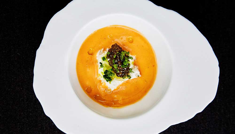 What do they like then? To judge simply by the compositions on the plate, La Fonda Xesc stands for clean, honest and rustic flavours, closer in spirit to Nordic locavore haute cuisine but with less of an ornamental approach. A starter skewer of gambero rosso shrimp croquette with basil and soy sauce followed by a cold tomato and crab soup with cream cheese, herring eggs, coriander and ginger demonstrate this aptly: immaculately plated without looking like an art installation with fabulous, bold flavours.