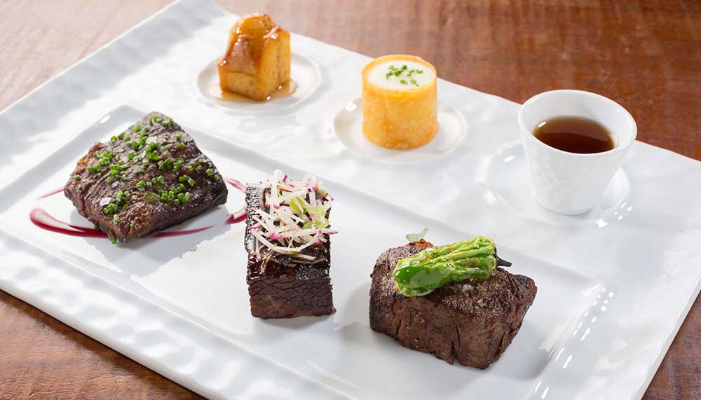 Hand-sliced cuts of beef – everything from Japanese A5 striploin to American skirt steak to Australian short rib – are poached in butter and finished on the grill. Fresh, daily sourced seafood options include pot pie with local lobster, black truffles, and mushrooms; tuna poke infused with Asian pears, pine nuts, quail-egg yolks, sesame, and mint; and a seafood tower that features king crab, whole lobster, oysters, shrimp, clams, sushi, poke, and sashimi.