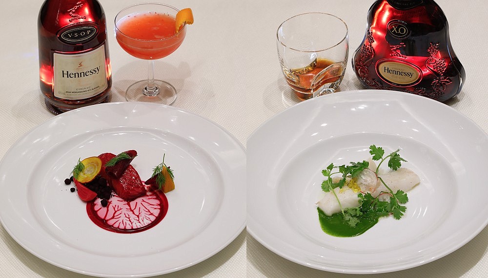 Stern and serious he might be at work, but Clift also has a quirky sense of humour. This manifests not just through a series of quips but also on the fine crockery in front of us. In a four-day lunch and dinner series, paired with Hennessy XO and Hennessy VSOP cocktails, Clift’s imagination was on fully display. The six-course menu began with a plate of Petuna Ocean trout with beetroot, smoked ox tongue and horseradish cream. Beautifully delicate, the fish melded well with the more textured tongue and the fresh heat of the horseradish, sitting on top of beetroot sauce grimly garnished to resemble blood vessels. A roasted leak and potatoe consume was next – hearty, healthy and homey, with a specific tinge of chlorophyll.