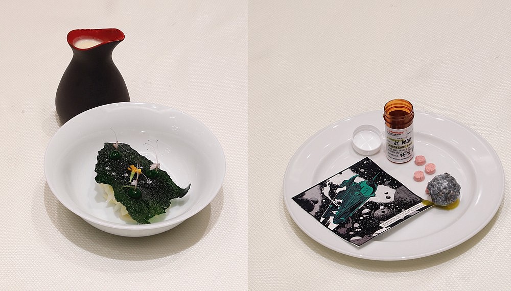 On the menu, a sweet treat of coconut textures was supposed to end the meal. But Clift had one last surprise to precede that, a showing of his more avant-garde side. A pill bottle and a small grey rock arrived. Waving the card illustrated with a space ship that came with the plate unleashed a strong scent of Madras curry, which is apparently what space smells like. Each pill, prescribed by Dr. R Clift, was the condensed form of an entire cheesecake slice, while the asteroid was a mandarin-and-madras sorbet encased in chocolate. It looks simple, but according to Clift, is ‘fiendishly complicated to make.’ It takes precision, and wit, to create something like this, and Chef Ryan Clift has both in spades.