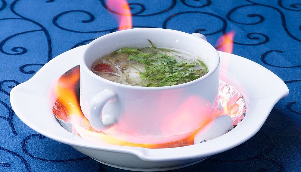 Among diners, many of whom are returning guests, the visually arresting Szechuan Flame Codfish Soup is also a particular favourite. Coddled by actual (if temporary) flames, the bowl contains a nourishing elixir – slightly briny, slightly sour and slightly piquant – in which swim fresh fillets of cod. In comparison, the Shang Shang Qian – skewers of clam, sea jelly, sea asparagus, tree fungus and prawns served in a bamboo cup of comforting, deep-flavoured broth to resemble joss sticks offered for heavenly blessing – was less showy. Proof in the pudding, or in this case the pot, and the word delectable crossed our minds.