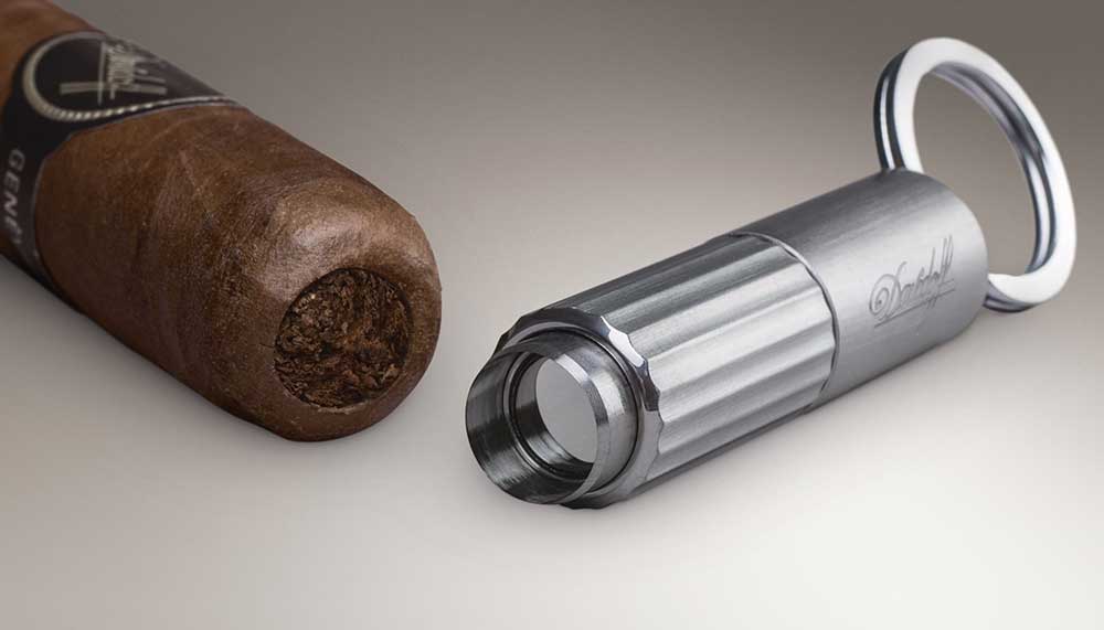 Many punch cutters leave jagged holes, and no one size can adequately fit the vast variety of ring gauges now on the market. But, finally, the challenge has been met with Davidoff’s new Duocut Double Blade Punch Cutter (US$199/RM806), a discreet, travel-friendly, and robust key-ringed accessory. It features an elongated grooved ring that, twisted one way, produces a razor-sharp cylindrical blade for cigars of 40- to 50-ring gauges. Twist it in the opposite direction and a larger-diameter ring emerges, suitable for cigars of 50- to 70-ring gauges. In other words, this one accessory can handle anything from a lancero to a super gordo.