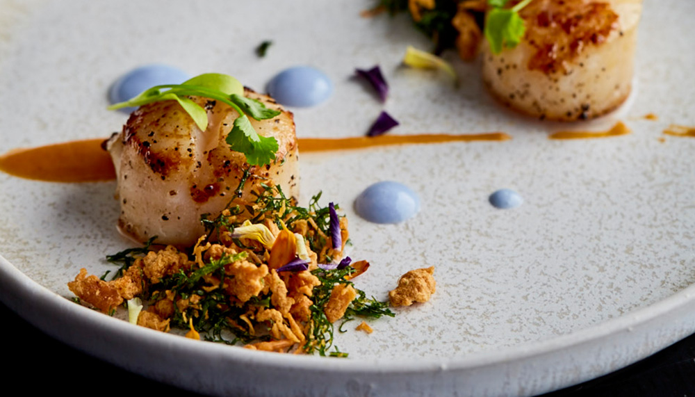 The whiz chef approaches his bespoke menus at Define:food with a blend of imagination and execution before serving them up on stone plateware, custom-made at an atelier in Malacca. “Every step in cooking is quite straightforward – the challenge is when you have to coordinate 47 different steps in order to produce one perfect dish,” he says. Goh’s self-explanatory Tribute To Our Ocean bespoke menu (RM300 per pax) begins with an amuse bouche of Fin de Claire oysters served on a bed of wood and dry ice. The combination of basil jello and hot sauce melds into the raw taste of sea and shell – with a subtle aftertaste of tomato extract.