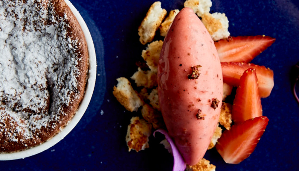 The plat principle consisted of Ike Jime Grouper – a Japanese-style of ensuring freshness in the fish’s preparation – together with umami beurre blanc, vegetables and a pomme soufflé of Jerusalem artichokes. The tender, succulent fish contrasted well with juicy, crunchy carrots caramelised at its tips. A dessert of chocolate soufflé offered intriguing hints of Maldon sea salt, and a surprising side of black pepper-accented strawberry sorbet. Guests at the restaurant may request for the 12-seater private dining room which is available on request, as is the bespoke menus which offer Goh’s extensive repertoire of culinary skills.
