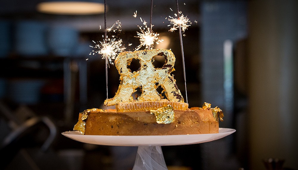 It takes five days to prepare, as ingredients have to be specially flown in from Europe and Africa. When ready, the unassuming looking cake is covered in more gold leaf and fresh honeycomb, topped with sparklers. Oh, and a giant logo – RR for Ristorante Rafele – made out of Varlhona chocolate. We at Robb Report approve, naturally.