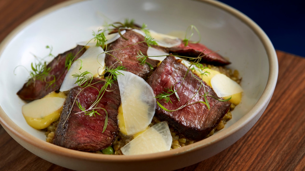 Moving on to the mains, we started with shanklish. A combination of labneh, egg yolk, heirloom tomatoes and kyuri, this dish presented a spectrum of flavours that left me feeling quite sated. Next up was the Sayadieh (fish rice), highlighting the Spanish mackerel that was enveloped in tarator sauce, and accompanied by a side of pilaf rice. Stealing the spotlight as my personal favourite was the Wagyu freekeh, parading Wagyu oyster blade with a marbling score of MB6/7, complemented by freekeh, spring peas and lime aioli.