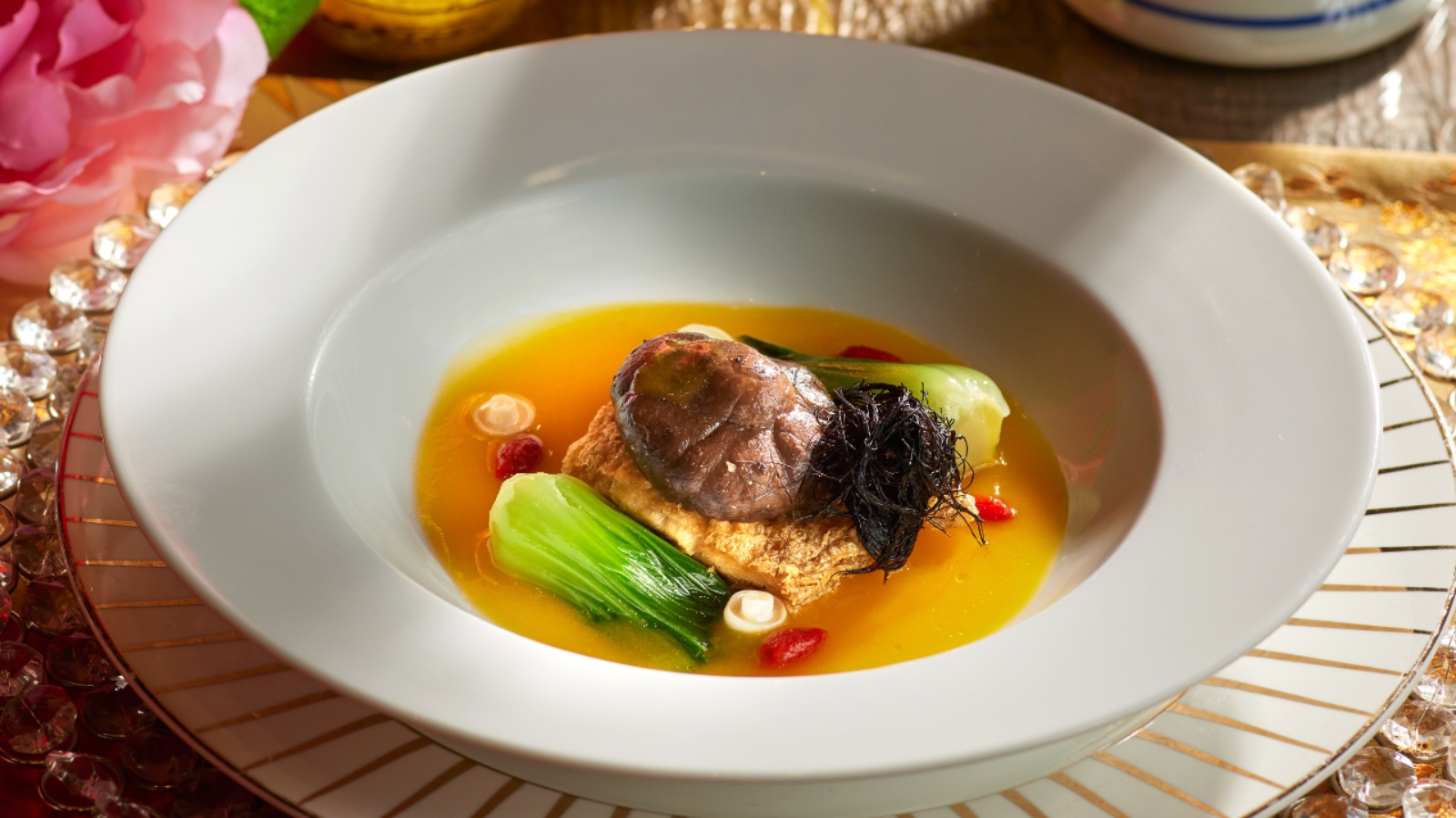 For dessert, Chilled Osmanthus Tea with Water Chestnut and Peach Gum offers beneficial advantages that balance the body’s internal heat. Meanwhile, the Deep-fried Homemade Yam Nian Gao may be simple in its presentation but is a difficult culinary art to master.