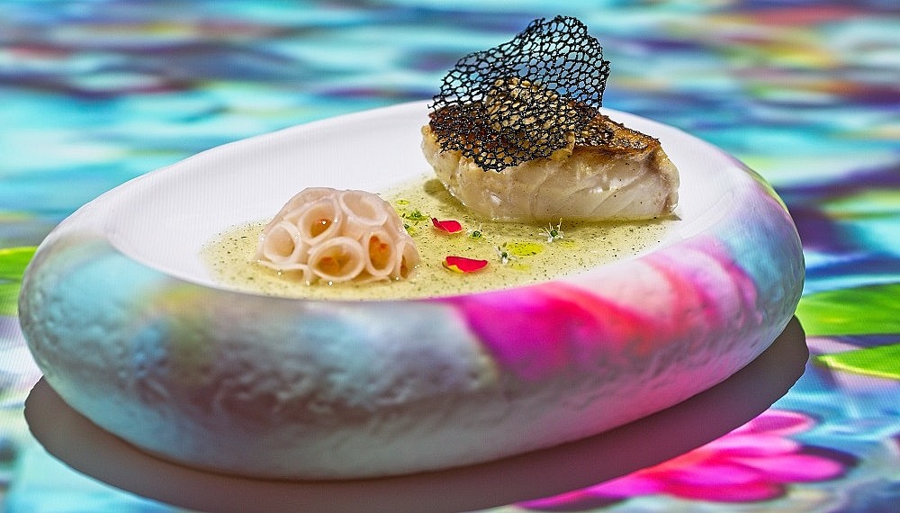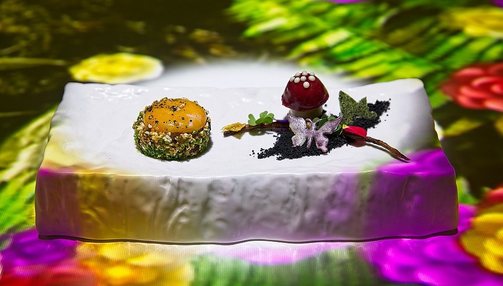 “The secret to making this dining experience truly immersive is how we use technology as a way to tell a new story,” Chef Won explains. “It’s a theatrical production but on an entirely different platform, where food plays a leading role in this new form of artistic expression.” The backbone of both the menu and the experience is very much Malaysian: diners will find themselves nibbling baby baguette sticks with chicken skin and Enfin’s version of sambal olek while surrounded by a virtual tropical rainforest and Rafflesia flowers.