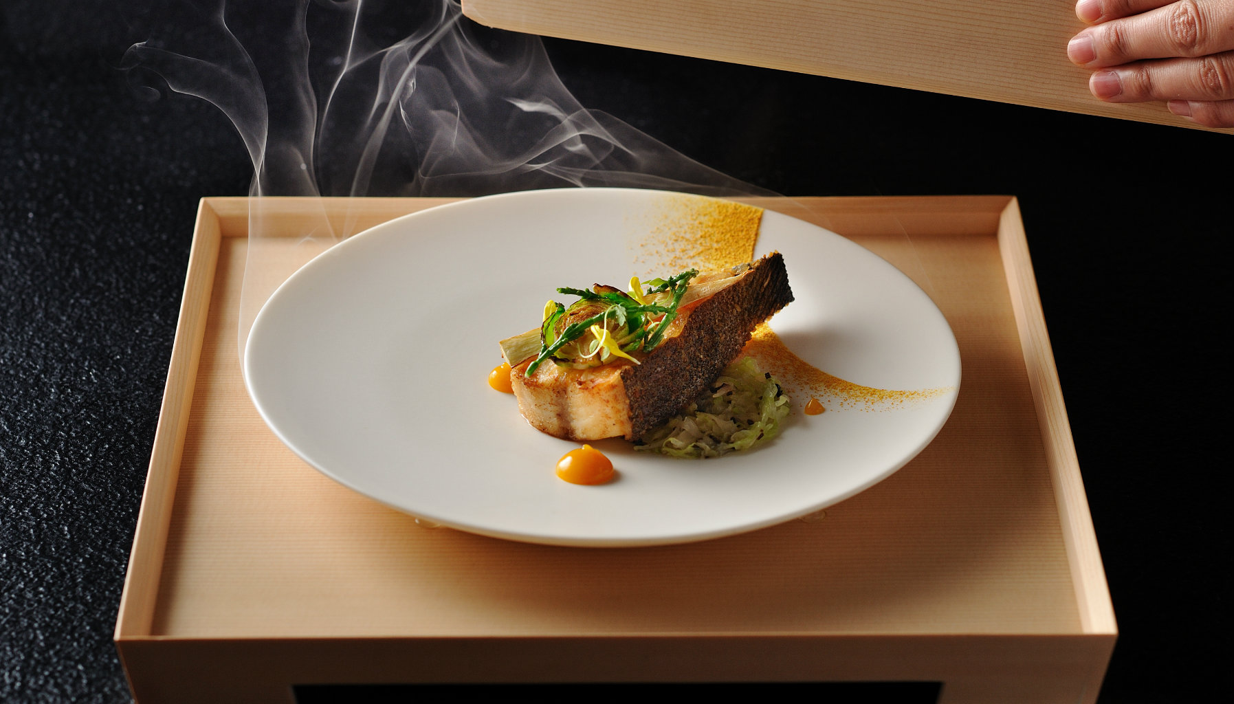 The seasonal menu, priced at ¥18,000 (RM663) per person, is nature-inspired French cuisine featuring local produce sourced from all over Japan, with a particular focus on fish. Depending on the dish, fish is either the main event or subtly worked in. Each course is at once a study in contrasts and a lesson in harmony, displayed in the play on textures and medley of flavours. Beautiful in composition and meticulously assembled, every plate is a work of culinary art.
