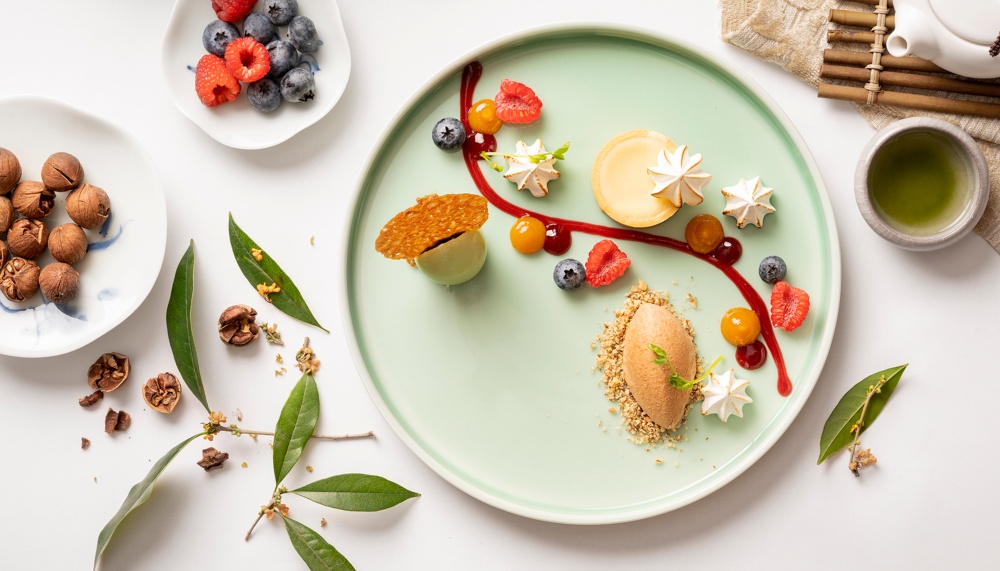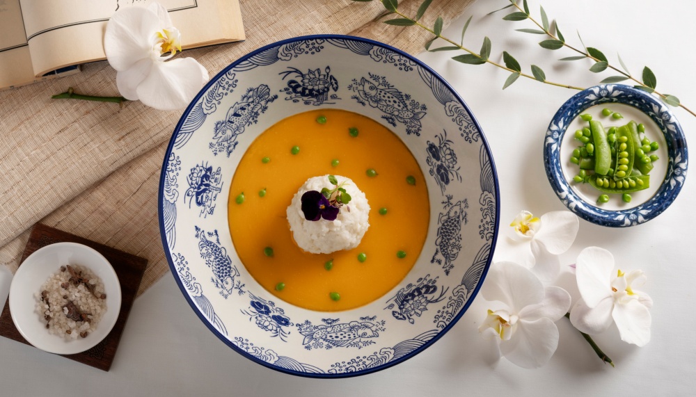 A vein of tradition still ran prominently through the meal: chef Kevin Ji of JW Marriott Hotel Shanghai at Tomorrow Square paid tribute to his city’s sea port heritage by adding a cod fishball to a rich golden pumpkin soup. Pungent soybean paste, homemade noodles, and braised Wagyu short ribs emphasised the heartiness of Beijing cuisine, just as a delicate osmanthus flower cheese tart served as an example of the light, subtle flavours that characterise Huangzhou desserts.
