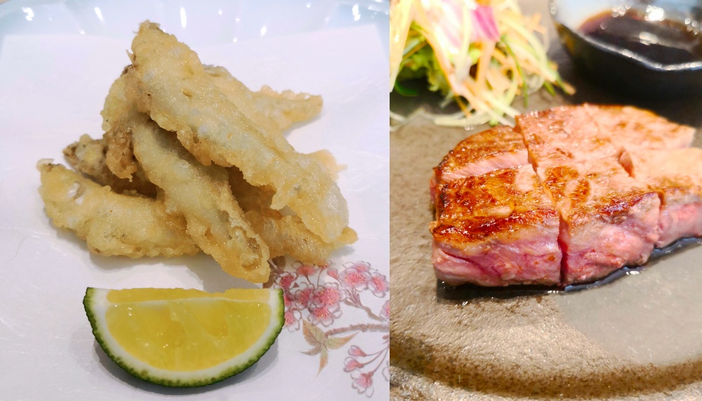 Later on, chiayu sweet fish (caught in their infancy before they grow too large to be eaten whole) are deep-fried to perfection, sprinkled with Japanese lime and mountain pepper, and served on rice paper patterned with the season’s flowers. There are, of course, generous servings of deftly sliced sashimi and sushi, ranging from juicy tuna belly to the simple flesh of a dried gourd, along with cubed Wagyu beef that’s grilled on the spot.