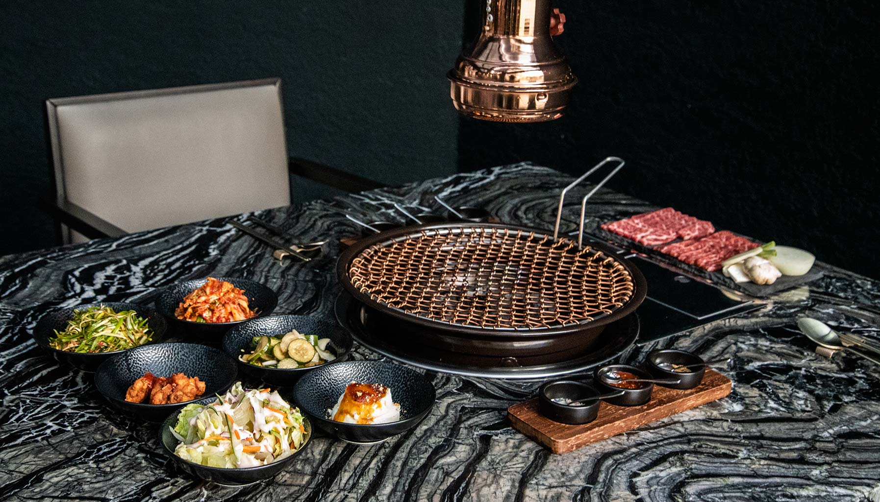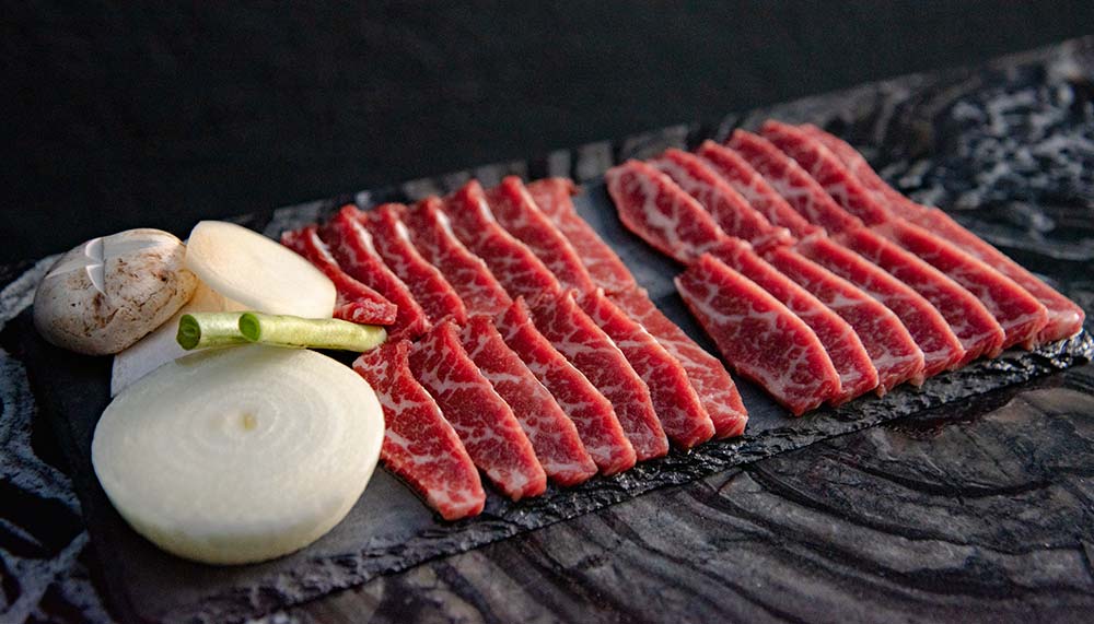 Dining here is cozy, thanks in part to warm lighting and the fantastic service from the friendly staff who help you grill your selection of meats, allowing you to prioritise family and friends. Open up the menu and you’ll find a lean but focused selection, featuring cuts of beef the likes of prime rib, marinated ribs, beef brisket, ox tongue and aged meats.