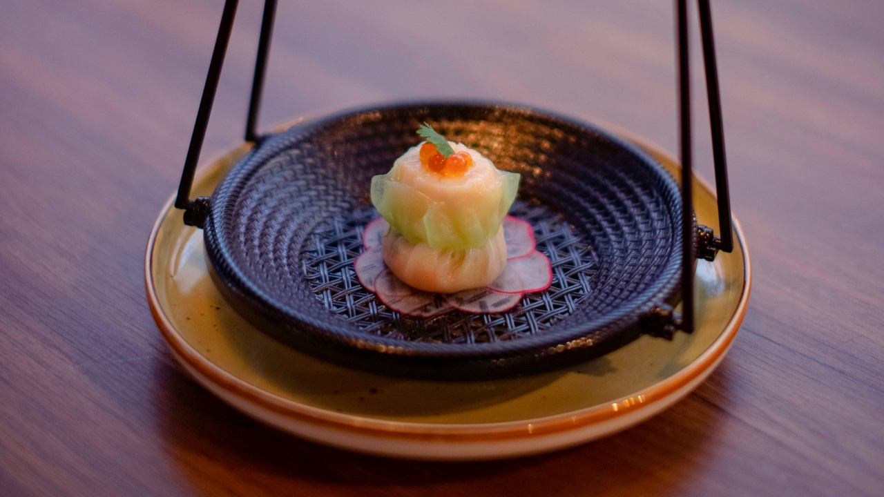Combined with his near-encyclopaedic knowledge of dim sum—the ideal ratio of skin to filling, the way different flours (rice, tapioca starch, and potato flour) can be made into skins, down to the skins’ thickness in millimetres—the difference is palpable. Each course typically consists of a plump, generously proportioned dim sum dumpling crafted by Chew’s chef, who has been making them since the age of 18, and every one of them is an exercise in balance and refinement.