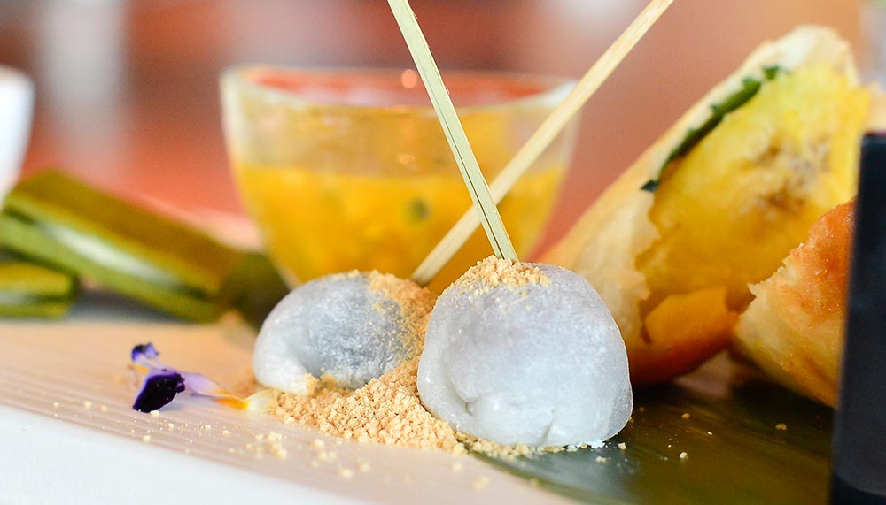 The signature Savoury & Sweet Delights set (RM93++) is a menu of two halves. First, a collection of flavoursome delights, some of which are adapted from Nobu KL’s menu, including crispy seaweed chips, a meltingly delicious salmon tartare and a white fish tiradito with the refreshing zing of yuzu. It may be a meal on its own, but save space for the Sweet portion: a coffee crème brûlée with Suntory whiskey foam, banana harumaki with a passionfruit puree and scrumptious profiteroles filled with crème patiessier and raspberry.