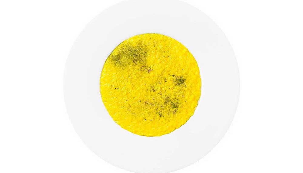 Layers are a common theme for this menu. The second dish – black and white squid – is built upwards, starting with a citrus reduction, pannacotta of colla di pesce and sea urchin, impossibly thin circles of squid (white and dyed with cephalopod ink), topped with a fried spaghetto. Subtly briny and amazingly creamy, this is sheer elegance. Next, a risotto with fresh turmeric juice impresses with its sharp flavours, neatly avoiding the heaviness trap that risotto can often fall into.