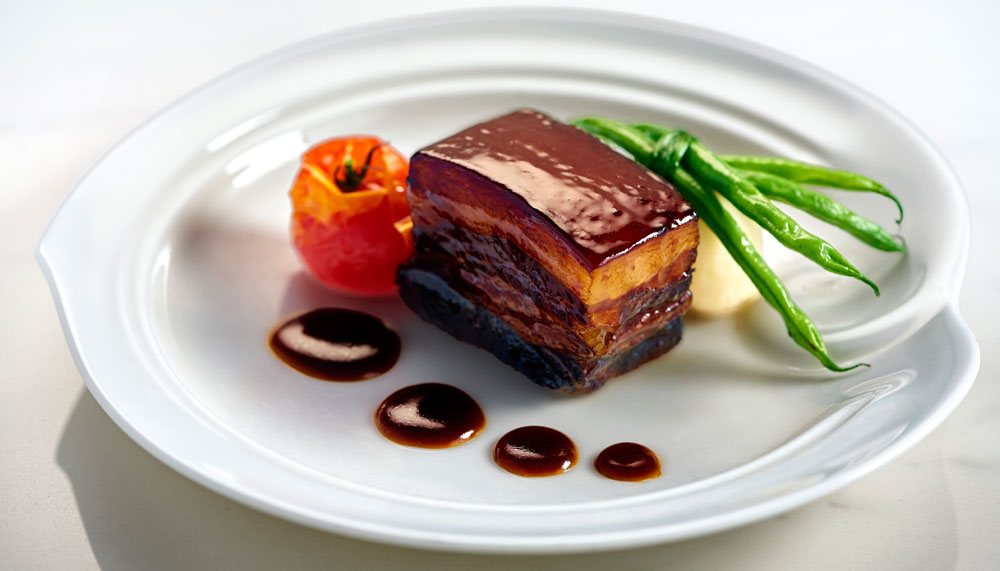 Hong Kong’s restaurant scene according to him is always changing. He notices that there is presently a trend towards a more retro-influenced menu. Dishes that were popular in the 1990s are coming back into fashion in a big way. He lists Summer Palace’s greatest hits dishes such as the beef ribs in champagne sauce; milk egg white with scallops and crab roe; and honey-glazed ham with deep-fried bread as a couple of such examples. The only difference, however, compared to the heady 1990s, the “presentation is more modern”. But “the cooking style is the same,” says Chef Leung.