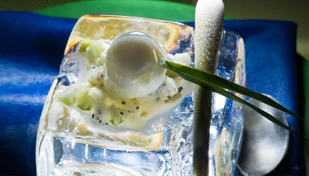 This performance was followed by an appetiser of pan-seared scallop with salmon cream and caviar interpreting the feelings of Intimacy. The lobster bisque that followed illustrated Elegance perfectly with toothsome lobster in an understated broth. This segued into an upbeat take on sorbet; lemongrass and citrus sorbet was served with a refreshing dragon fruit salsa.