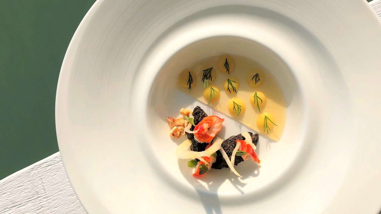 Her seven-course degustation menu, created around the theme of ‘Taste, Texture and Theatre’, features all the culinary trappings of luxury which a dinner occasion at The St Regis demands. A punchy Le Merle Blanc de Château Clarke 2017 from Médoc, for instance, is introduced with Tsarskaya oysters, sliced Hokkaido scallops, and a cognac-infused Boston lobster bisque.