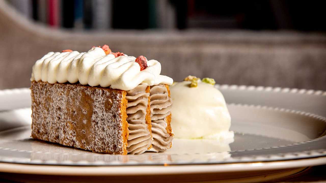 For the main course, there’s a choice of corn-fed chicken, Japanese red snapper or MB9 wagyu. Poached with truffle and a reduction of cooking broth and oriental mushrooms, the chicken breast is superb with a glass of Italian rosso. Japanese red snapper, on the other hand, is steamed and drizzled with crustacean veloute and boiled potatoes, pairing nicely with a glass of bianco. For the wagyu, simplicity is best, cooked pan-roasted and topped with Café de Paris butter, its rich flavours calling for a medium-bodied Cabernet Sauvignon.