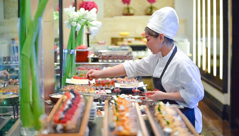Among the multicultural starters on offer include luscious fresh oysters, chunky lobsters, decadent foie gras (there are several delicious variations), prime rib, beef or salmon Wellington. At the international station, meats charred as much or as little as one desires, are served to the table as is a selection of pasta dishes, which the hotel’s Italian restaurant Biscotti is suitably proud of.
