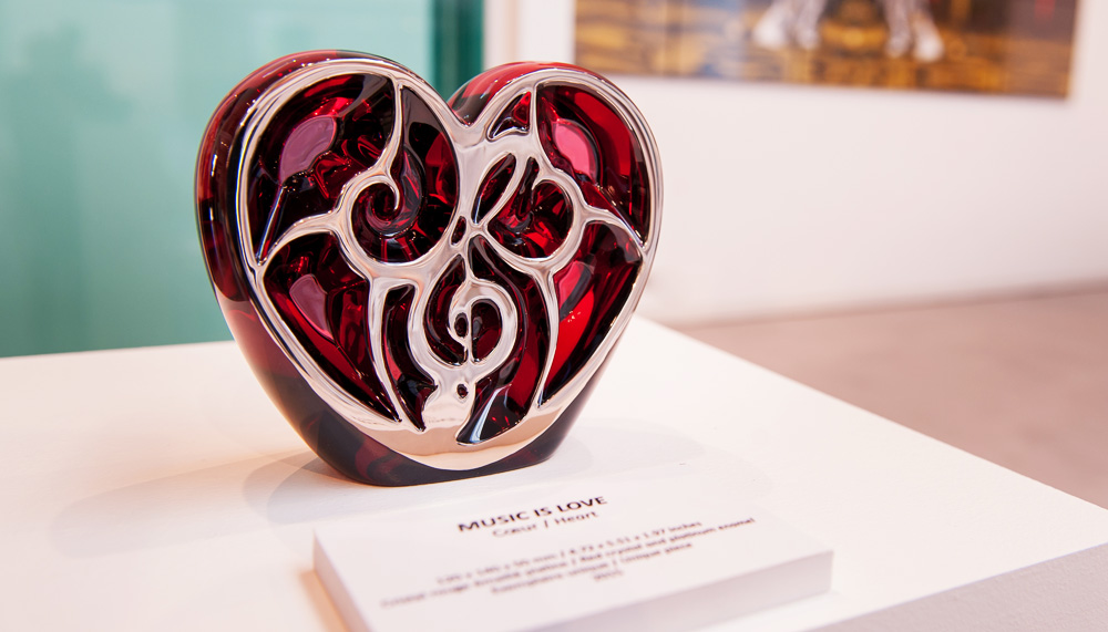 It was John who selected the theme for the collection – Music is Love – based around the notion of music’s ability to connect diverse and often conflicting peoples, a condition he suggests is required to arrest control of AIDS on a global scale. “I remember playing in Northern Ireland in the 70s and Catholics and Protestants couldn’t come together except at a concert, when for once they’re together as one – and that memory has always stayed with me,” says John. “These pieces are a way of raising money but also of carrying that vision out into the world through art. Hearts and angels are of course symbols of love. An angel is an obvious choice. Though this angel has grown up.”