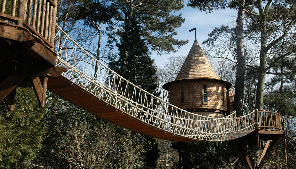 Indeed, not many conservatories come, for instance, with a secret lever hidden in a bookcase, which opens a door to a secret room. Or with rope-bridges, such as might connect two or three separate treehouses, with a slide or zip-wire for rapid exit. In fact, Blue Forest has, so far, only had one request that it has not been able to fulfill. “One client lived in a part of the world occasionally struck by hurricanes, and he wanted his treehouse to be hurricane-proof,” says Payne. “We had to tell him that that, at least, couldn’t be done. But just about anything else could be.”