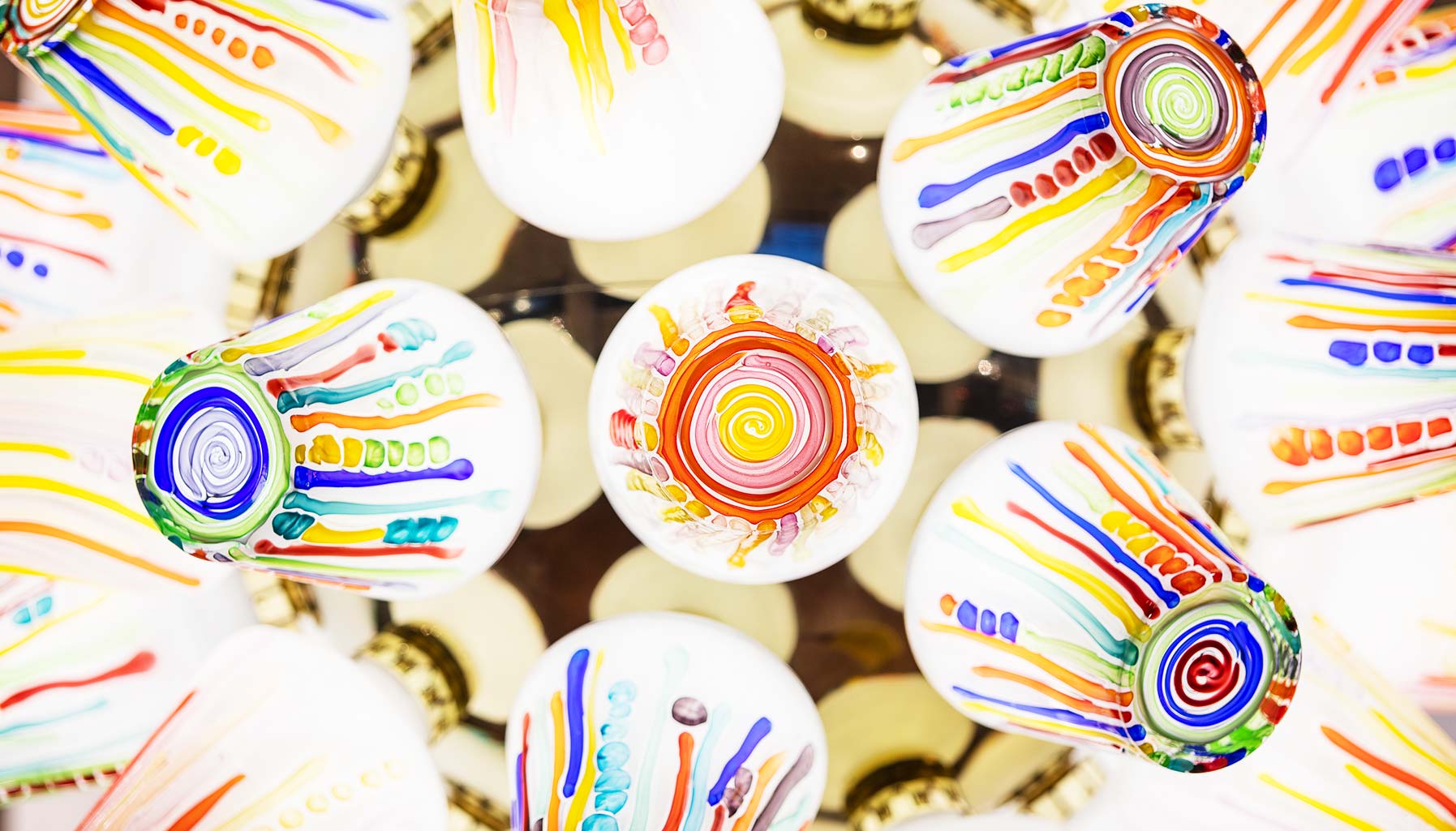 After visiting the Lasvit factory, the Campana Brothers soon conceived the Candy Collection as an extension of their own “Sushi” series – a tribute to the tradition and methods of upholstery. The Candy Collection, which includes the Sphere chandelier, the Ring chandelier and the Lollipop table lamp, was inspired by the colourful candies sold in Brazilian markets. The affable 63-year-old designer explained the process: “When Lasvit invited us to make the collection, we wanted to bring to the glass universe part of our universe made in our studio which is the Sushi. We visited the factory – it was in the Czech countryside – it looks like a fairytale. They looked like they were making candy; the melting glass looked like caramel. (What they have done so far) is very clear, so we tried to go the opposite – the universe of colours.”