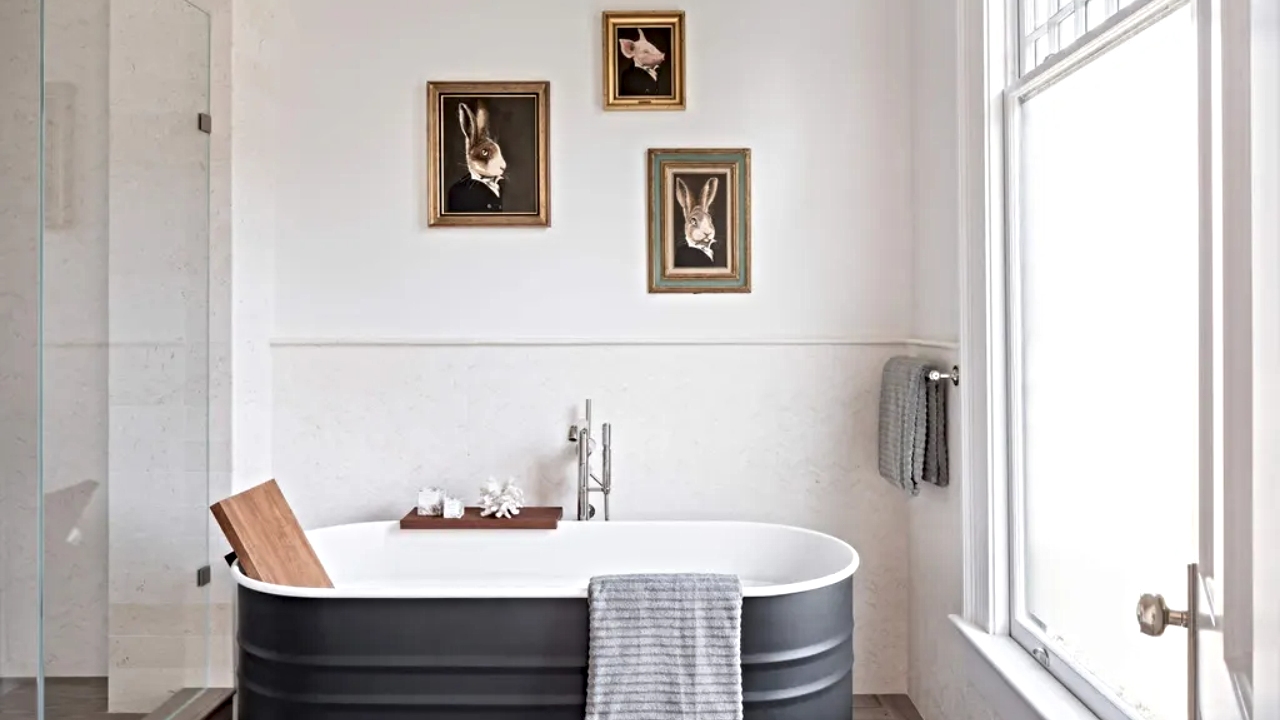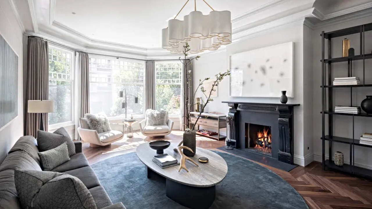 Prior to the 2018 makeover, the home was painted a soft mix of blue and white with gold detailing. The redo saw the colour scheme shift to more contemporary shades of light and dark gray.